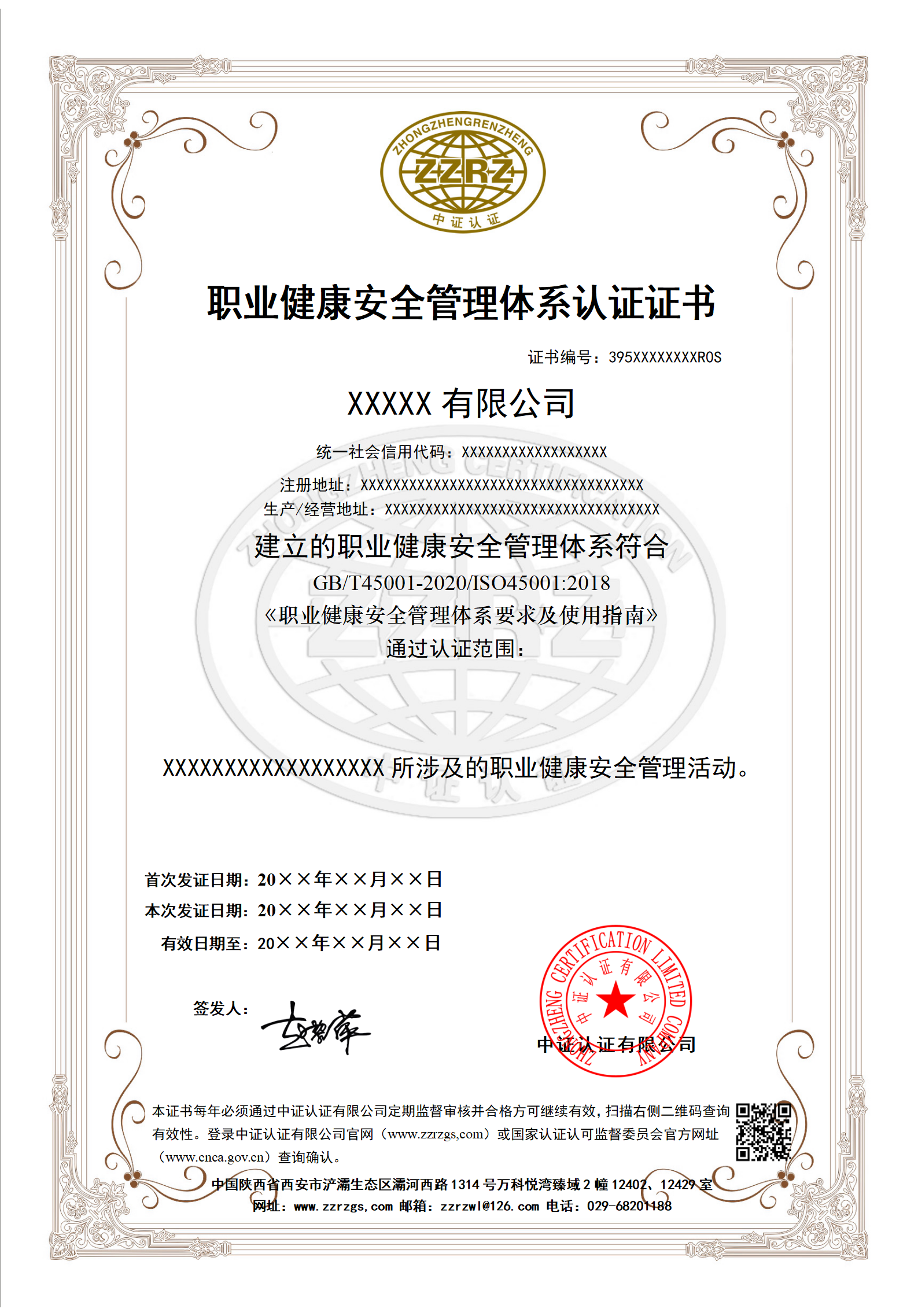 认证证书样本